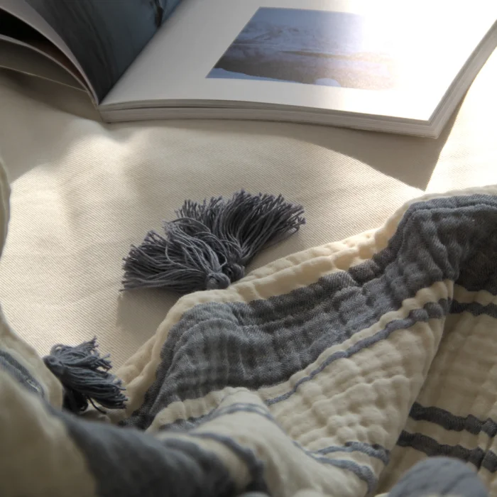 Striped 4 Layer Muslin Throw