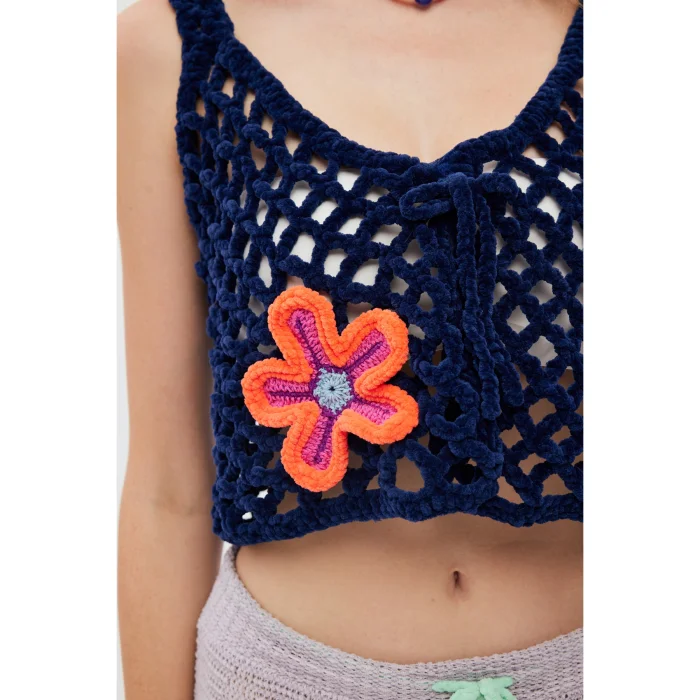 Product: Hand Knitted Velvet Flower Embroidered Vest