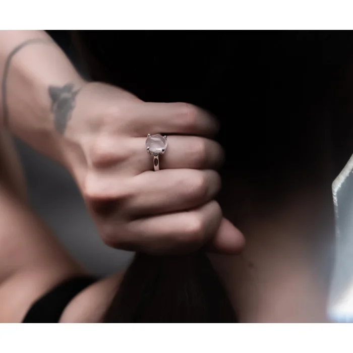 18K white gold plated on 925 Sterling Silver. Natural stone: Pink quartz100% handmade using traditional methods.