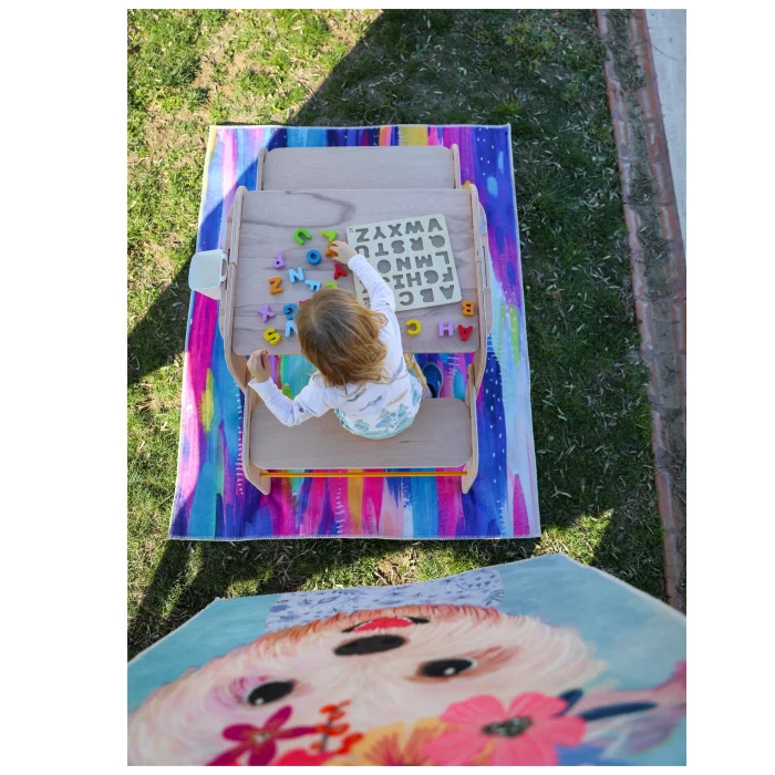 Up to 177 plastic bottles are kept out of the oceans and landfills to create this rug. Certified STANDARD 100 by OEKO-TEX®: tested for 350+ harmful substances to keep your little one safe.Non-slip latex backing for extra safety. The synthetic latex provides a more durable backing that extends the rug’s life; it does not present a risk to those with latex allergies, nor does it dry out or break down over time.