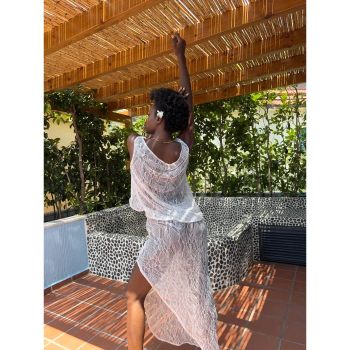 Product: Feeling Clouds White High-waisted Long Transparent Skirt And Top - Beachwear