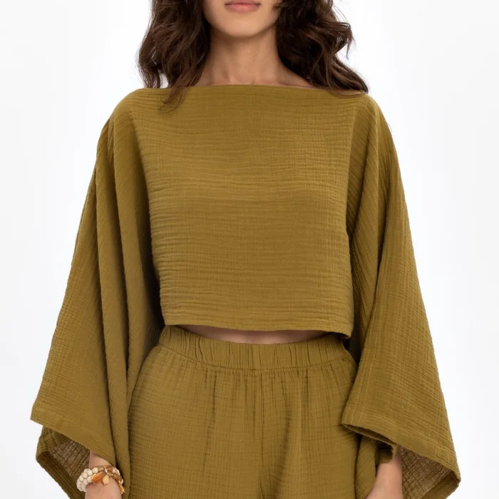 Product: Crop Blouse Boat Collar