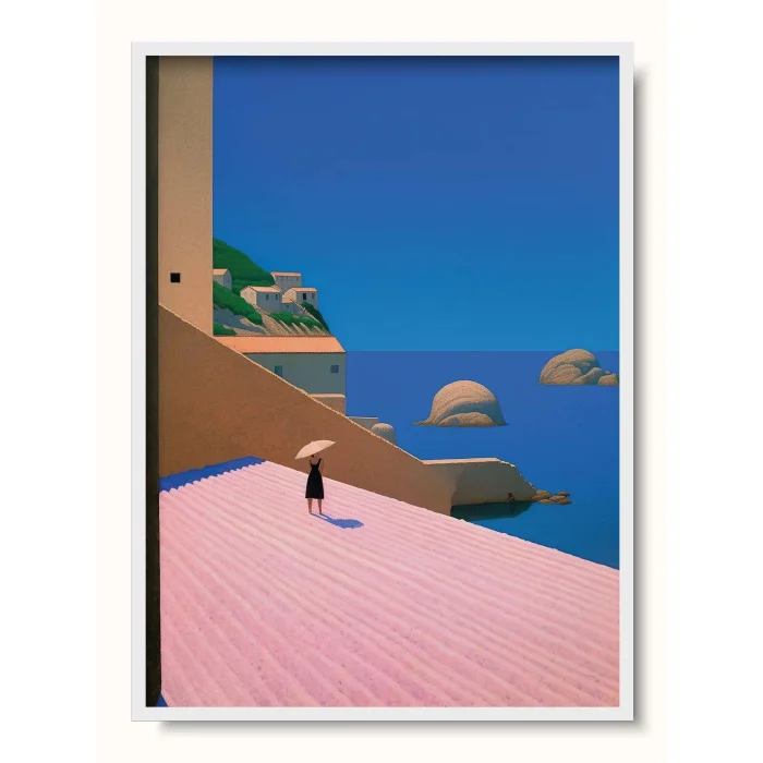 A Mediterranean seascape with pastel colors.