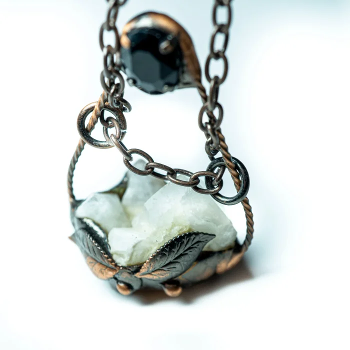 Onyx stones, which are processed as facet cut with crystal quartz stone in raw form, are completed with a handcrafted copper frame and chain. The difference of our intention necklaces series from our other products is that we combine necklace models that are not our own production, and only the soul that will buy it is sent to you by coding reiki with the intention it wants.