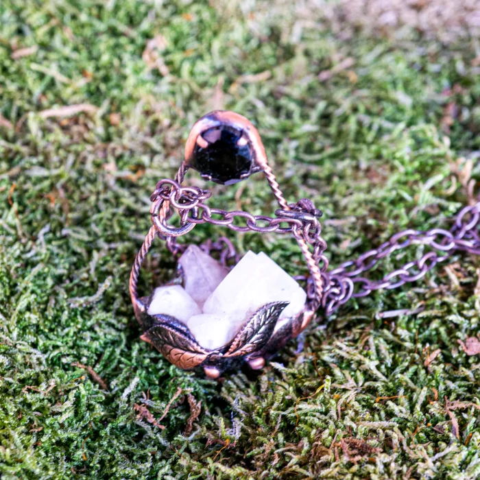 Product: Copper Work Crystal Quartz And Onyx Necklace