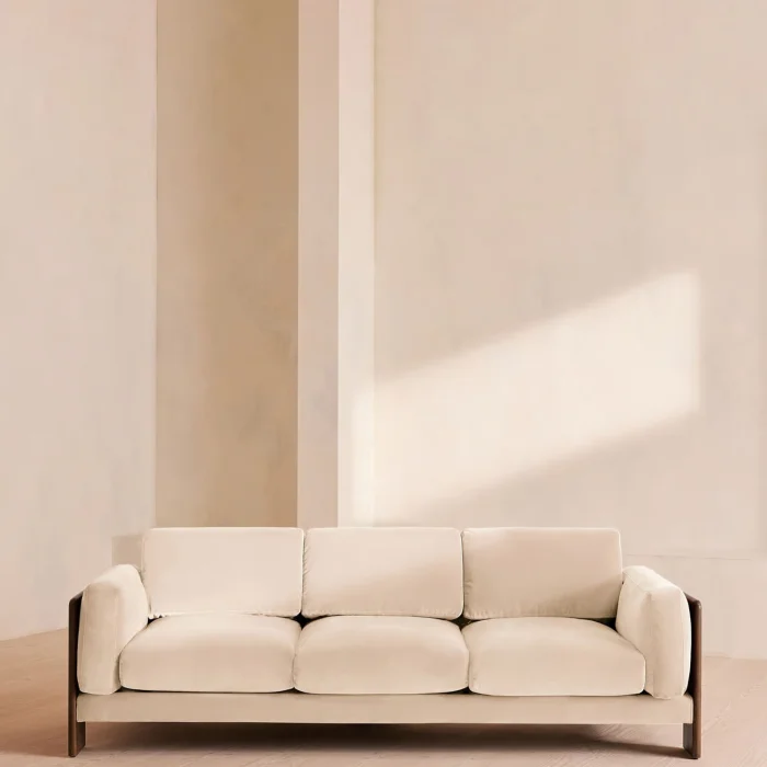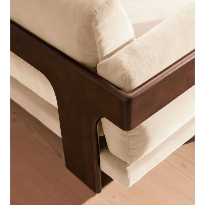 PRODUCT FEATURES • Upholstery: Velvet fabric o 85% R polyester, 15% cotton • Skeleton: Solid oak or solid walnut wood - Design: Relaxed silhouette, natural wood frame • Filling: Foam, fiber, and down • Cushions: Removable • Feet: Solid oak or walnut • Usage: Large and comfortable seating for 3 people • Assembly: No assembly required • Production: Handcrafted by INNATURE craftsmen DIMENSIONS • Height: 78 cm • Width: 221 cm • Depth: 95 cm • Seat Height: 42 cm • Seat Width: 178 cm • Arm Height: 62 cm • Weight: 65 kg ________________________________________ PACKAGE INFORMATION • Number of Packages: 1 • Package Size: 72 × 231 × 105 cm • Package Weight: 80.1 kg WE CARE At INNATURE, we use solid wood, natural fabrics and long-lasting materials. Marcha is a reflection of our sustainable production approach and high workmanship standards. ________________________________________ TIMELESS STATE OF COMFORT Marcha; He neither shouts nor holds back. It offers a quiet prestige with its natural materials, balanced proportions and strong stance.