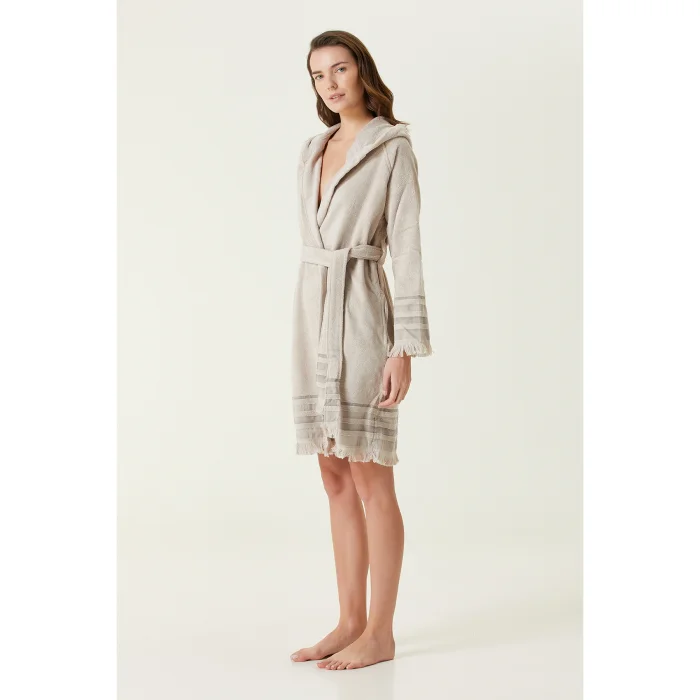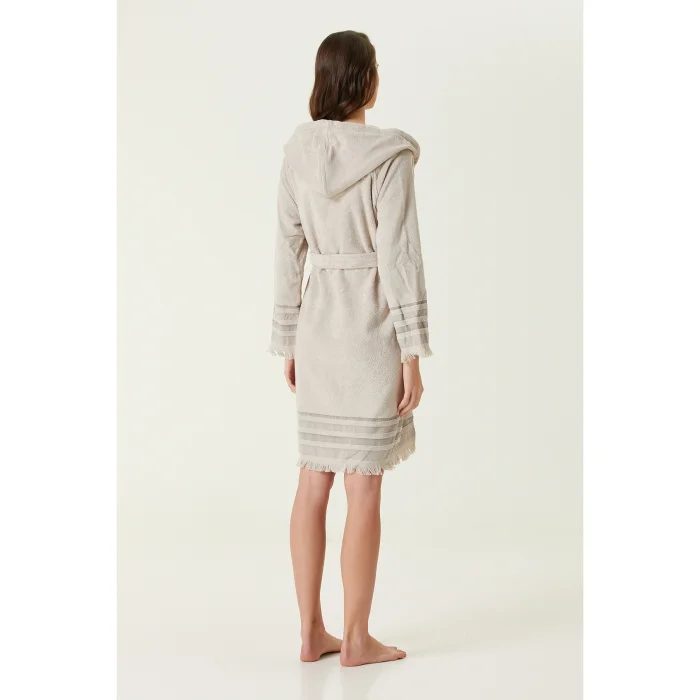 100% Turkish Cotton: Our bathrobes, which are made of quality Turkish cotton, stand out with their durability and natural softness. High Volume: Its high volume emphasizes the quality texture of our bathrobes. It offers a comfortable experience every time it is worn. ; High Absorbency: The high absorbency of our bathrobes provides maximum comfort after bathing and helps you dry quickly. ; Fast Drying: Thanks to its absorbency, it dries quickly and protects your skin and offers a comfortable post-bath experience. ; It is 340 gr/m². ; Model size: Height: 180 cm - Bust: 76 cm- Waist: 61 cm - Hips: 90 cm
