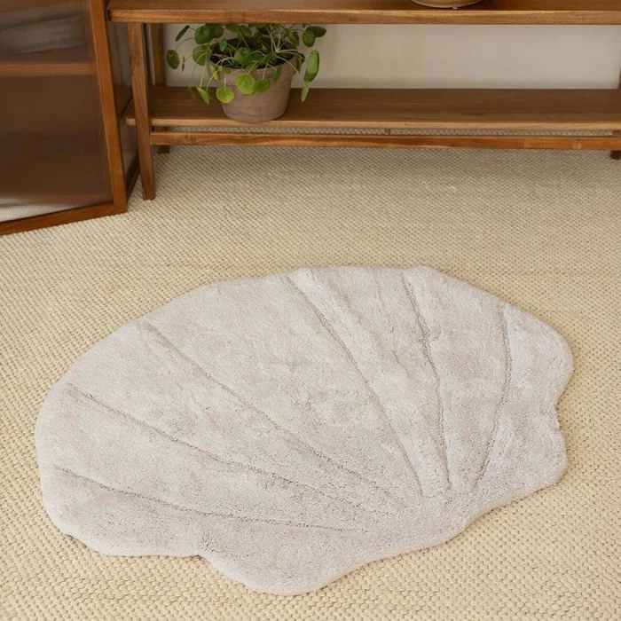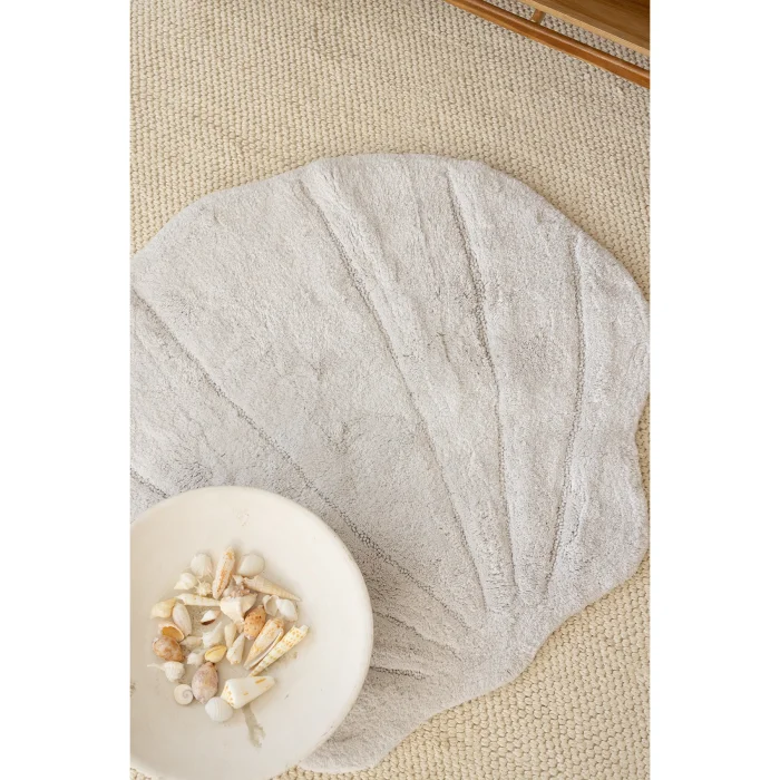 Handmade, Each Special for You: Each La Perla mat is carefully prepared by hand. Although produced by the same methods, each carries its own originality with slight differences; That's why every mop; offers a special touch that is yours alone.; Seashell-Inspired Design: La Perla mat adds a modern and aesthetic atmosphere to your bathroom with its shell form. This unique shape, inspired by nature, brings a sophisticated touch to your spaces and easily adapts to any decoration style. Natural Bamboo Fiber: Thanks to its structure made of bamboo yarns, it is both environmentally friendly and healthy; It offers a hygienic use with its natural feature; At the same time, its durable fibers provide long-lasting comfort; Natural Absorbency: Bamboo structure absorbs water quickly and dries in a short time; Thanks to its breathable texture, it prevents the accumulation of wetness and gives your bathroom a hygienic and spacious floor.; Softness with Every Step: The natural and silky texture of bamboo offers gentle contact with your feet with every step; It is ideal for those who want to leave the stress of the day behind or have a peaceful start to the day.
