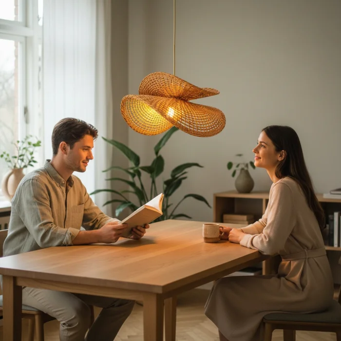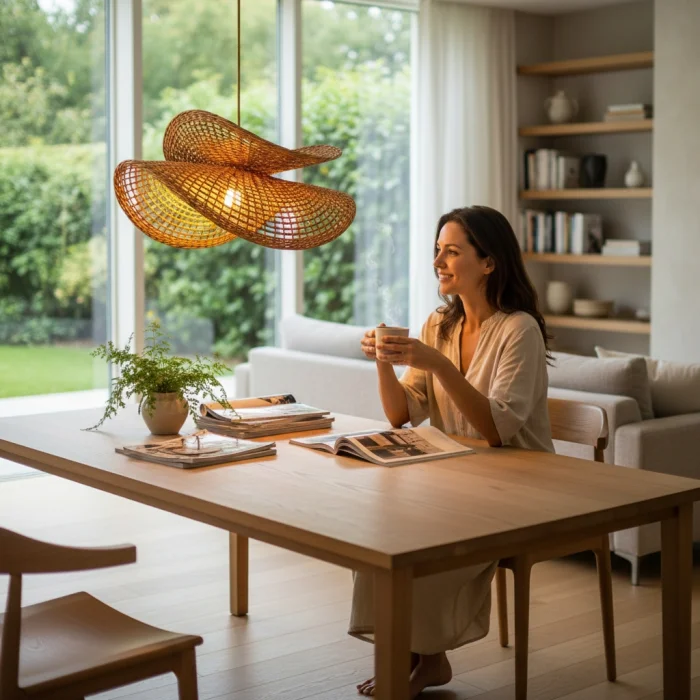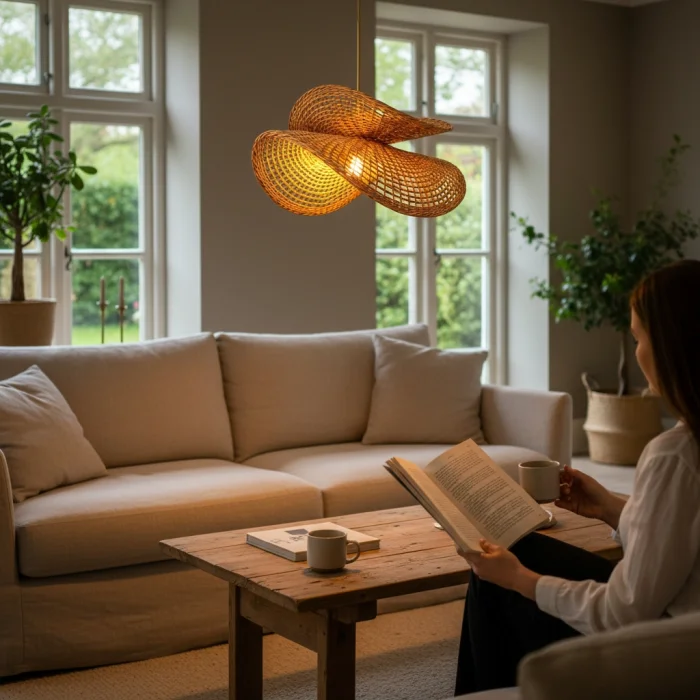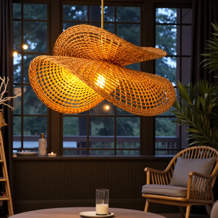 Natural and Sustainable Material: It is environmentally friendly, made entirely of natural rattan fibers. Lightweight and Durable Material: Suitable for home and commercial use (living room, dining room, bedroom, entrance, café, etc.). Modern – Bohemian – Rustic Harmony: It provides the perfect combination with minimalist, natural and modern decoration styles. 3 Different Socket Options: Adapts to your décor with black, white or gold socket alternatives. 100% Handmade Rattan Knitting: Natural kraft rattan construction, carefully knitted by master artisans. Natural Madder Coloring: It is colored with chemical-free, completely natural root dyes. Long-Lasting Varnish Coating: Protects the rattan surface, increases durability and is suitable for years of use.