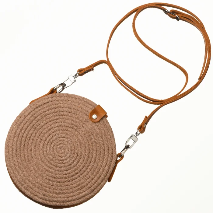 Cookie – Leather Detailed Bag It is completely handmade using cotton thread and has a diameter of 20 cm. Our products are completely handmade with high-quality genuine leather and eco-friendly materials. These unique products, designed by preserving the beauties of nature, offer you the perfect harmony of both elegance and naturalness. Dry cleaning is recommended.
