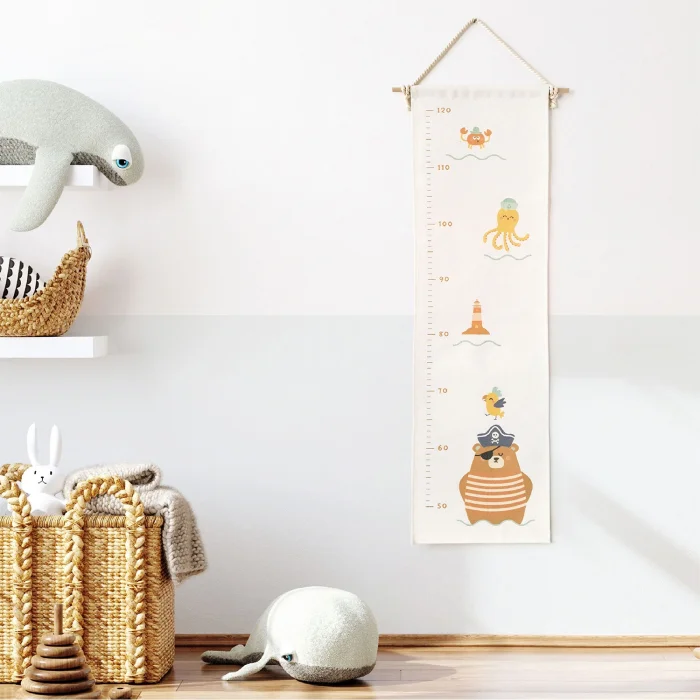 Product: Cute Pirates Wall Tapestry Height Chart, Organic Natural Cotton