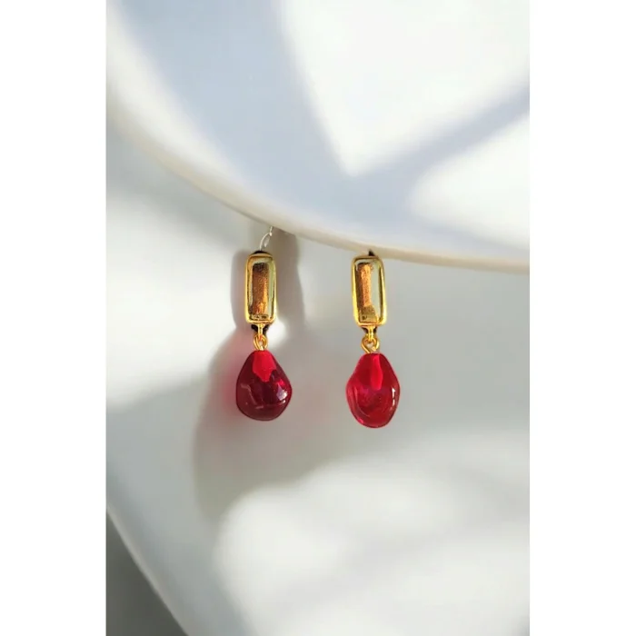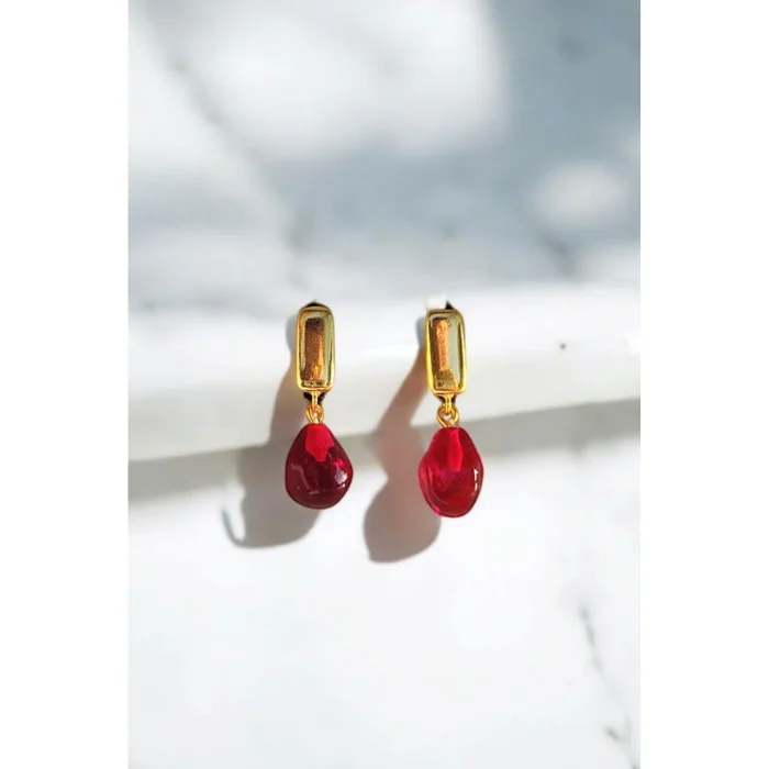 Lampwork pomegranete seed earring. It is made flameworking glass technique and handmade one-of a kind piece. 22K gold plate on silver hoop.