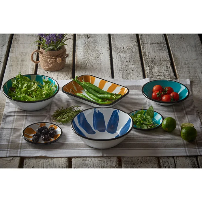 Handmade with infusion technique, tuquoise green enamel mini plate with black rim.