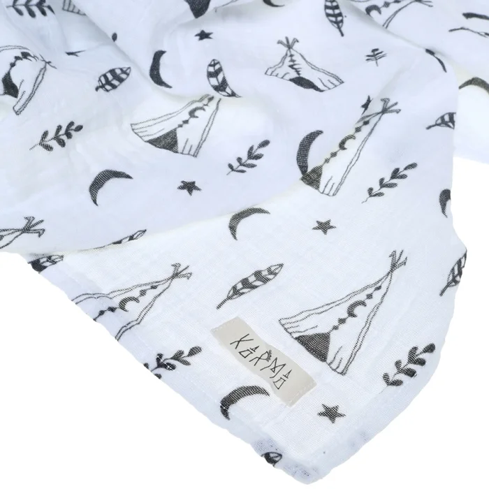It is prepared with organic fabrics and dyes and has GOTS Certificate. It is made of four layers of muslin fabric.