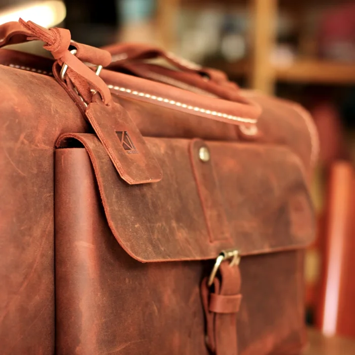 Material Used: Genuine calf leather (Crazy Horse Leather), white colored metal accessory, polyester rope.