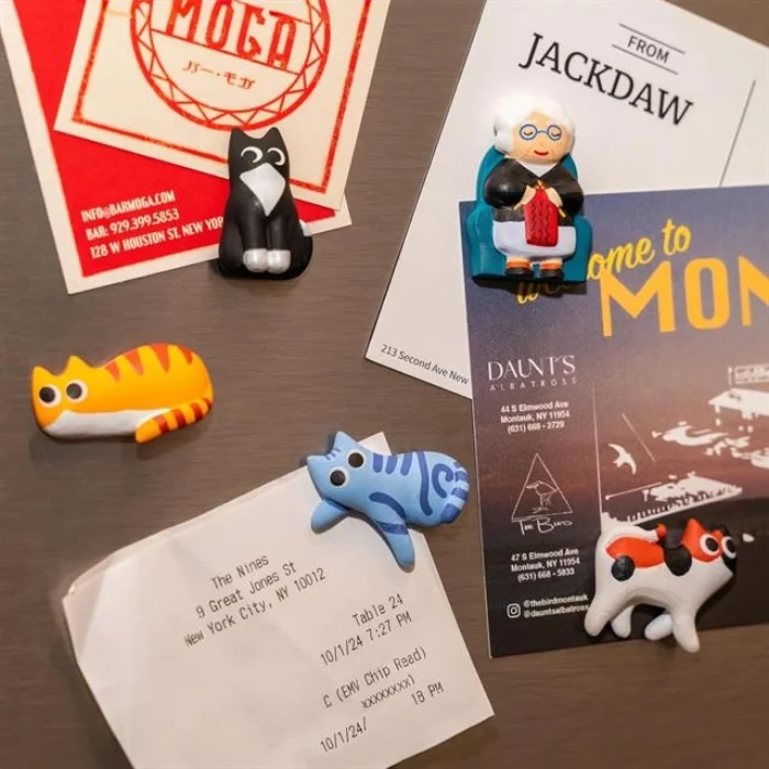 Calling all cat lovers! Show your love for cats with this set of 5 durable magnets. Dimensions: 2.75 cm x 4.25 cm x 1 cm