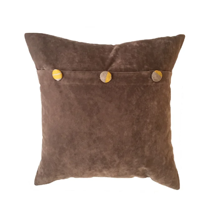 Front surface is kutnu fabric. Back surface is silk velvet. Decorative buttons covered with kutnu fabric. Sold as pillowcase only.