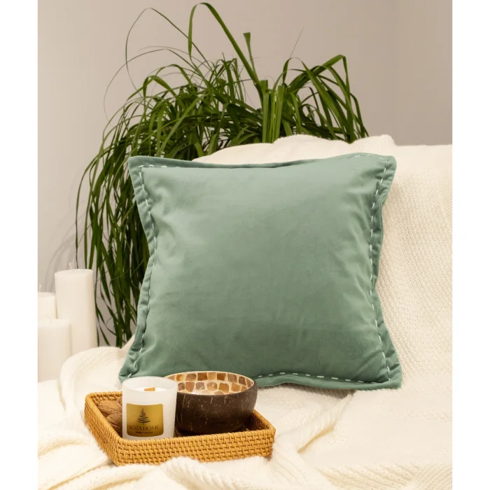 This stylish pillow with a natural Green tone and luxurious velvet texture is handily designed with a size of 43x43 cm. Solve your décor and comfort needs with this pillow, ideal for those looking for both comfort and elegance in their living space. The pillow's calm and natural tone allows it to blend seamlessly into any environment, making it a versatile addition to your décor. Beautify your space with the simple and modern look of your pillow and add a sophisticated touch to your living spaces. It is suitable for use in many different areas such as bedrooms, living rooms, workspaces and offices. Ideal for sofas and armchairs. This pillow is an important complement as it provides a comfortable space to relax while enhancing the overall aesthetics of your living spaces. Note: Actual colors may differ depending on lighting and monitor settings.