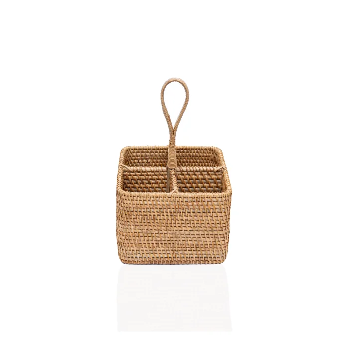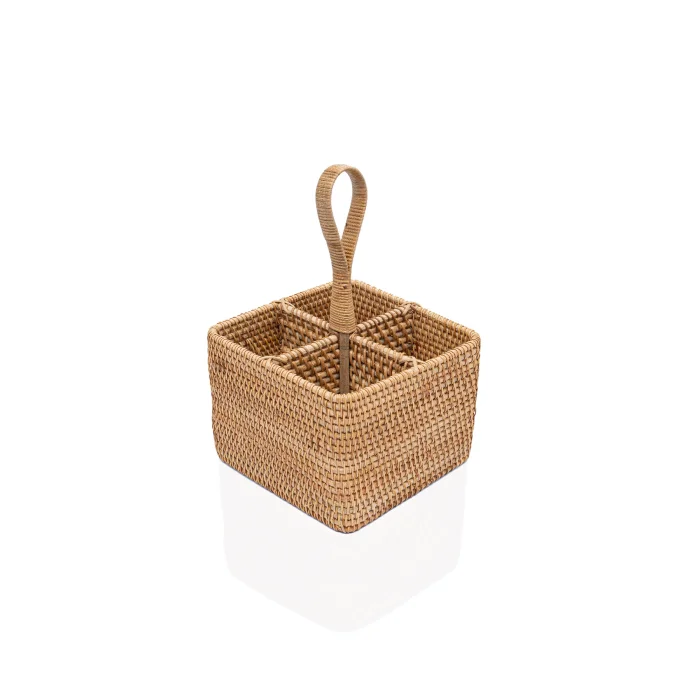 Meander Handmade Square Rattan Spoon Holder 8954 Our product is handmade from rattan material, respectful to nature. It offers an excellent solution for arranging spoons, forks and knives and adds elegance to your tables. Ideal for organizing and displaying makeup brushes, lipsticks, and other cosmetics. The natural elegance of rattan adds a touch of homeliness to your home. It becomes easy to organize your materials by using the compartments according to your needs. It can be used in all areas of home décor, providing elegance and order everywhere from kitchen countertops to bathroom sinks. Meander Handmade Square Rattan 4-Compartment Spoon Holder combines elegance and order in your home with its natural material and versatile use. If you want to add a natural touch when arranging your tables or vanity, this product is an ideal choice. The natural plants we use in our products are collected naturally in their natural environment, and they are produced by hand without any processing for the sake of perfect appearance or without using any mold to obtain a fixed size. Due to the natural state of the plants, color differences, color transitions, spots and various differences in the body of the plant are reflected in the product as it is. Again, there may inevitably be plus/minus differences in very small dimensions in the measurement of handmade products. 18x18x26 cm