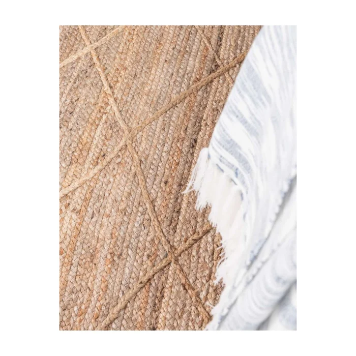 NATURA Jute is handloom-made in India from natural jute fibers. Jute carpets are hand-woven, special carpets produced from natural yarn that suit almost any style of decoration. It is recyclable, does not harm the ecological balance and is environmentally friendly. It is durable and unaffected by time, currents and trend wear. With its natural jute and cream knitting details, it brings the simplicity of natural textures to the environment. With its diamond-patterned structure, it elevates your décor with the movement of geometric patterns. Size options such as 90x150, 120x180, 160x240 and 200x290 cm are available. Natura Carpet features a minimal, modern flat-weave design that complements any décor. It is suitable for both indoor and outdoor use, is resistant to UV rays, resistant to moisture and mildew, and is easy to clean and maintain. Ideal for those looking for decoration, comfort and elegance in their living spaces. It's perfect for outdoors, gardens, and any space where you need durable and stylish floor coverings. The carpet blends seamlessly into any environment with its calm and natural tone. Beautify your space with its minimalist and modern look by creating an elegant and stylish environment. Due to the natural state of the plants, color differences, color transitions, spots and various differences in the body of the plant are reflected in the product as it is. Again, there may inevitably be plus/minus differences in very small dimensions in the measurement of handmade products. It should be wiped with a damp cloth. Note: Actual colors may differ depending on lighting and monitor settings.