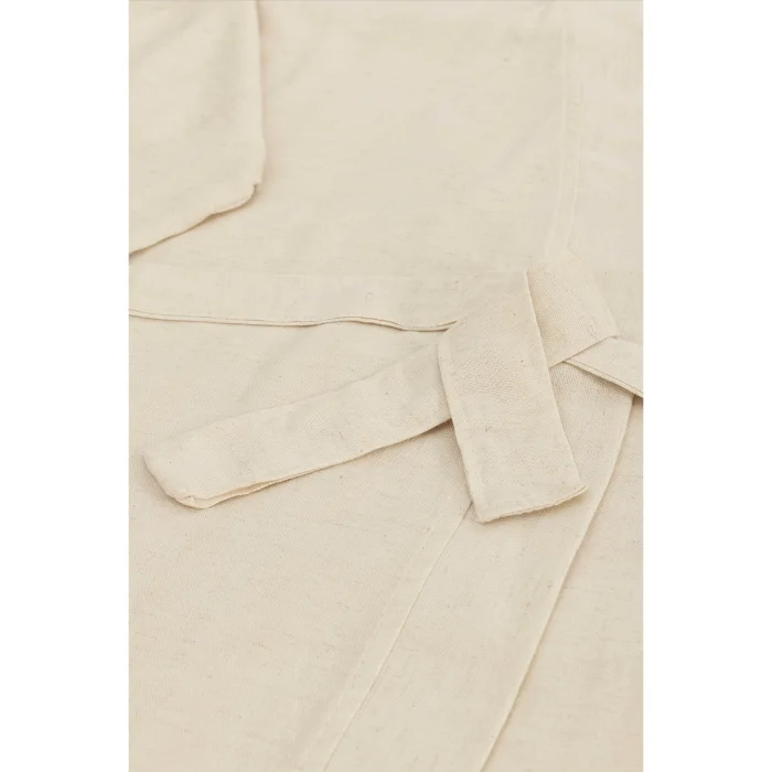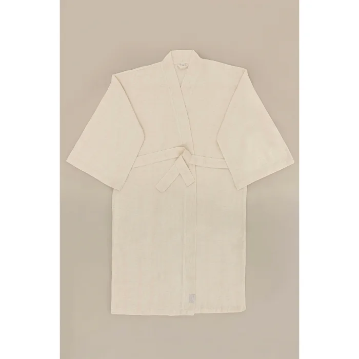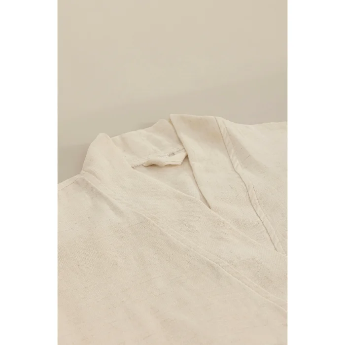 RAW COTTON LINEN NATURAL KIMONO S-M Raw Cotton Linen Natural Kimono combines comfort and elegance in summer. It offers both a comfortable and modern look with its low shoulder and bat arm design suitable for the S-M size range. It creates an elegant silhouette with a skirt length of 115 cm and an sleeve length of 45 cm. The 30 cm arm width allows for freedom of movement and adapts to any body. This kimono is perfect for use at the beach, by the pool, or after a shower. Thanks to its light and natural structure, it gently dries your skin and also helps you protect yourself from the sun. Thanks to its 65% cotton and 35% linen fabric, it offers a comfortable use in the summer heat with its thin fabric that keeps it cool. Raw Cotton Linen Natural Kimono is a summer garment that is both practical and stylish. It is recommended to wash at 30 degrees. To maintain the quality of the fabric, avoid washing it with harsh chemicals such as bleach or alcohol. Bleaching should not be done. Optionally, ironing can be done according to the fabric type. Lay-out drying is recommended. During the drying process, avoid exposure to direct sunlight to avoid possible fabric damage. Dry cleaning should not be applied. Note: Actual colors may differ depending on lighting and monitor settings.
