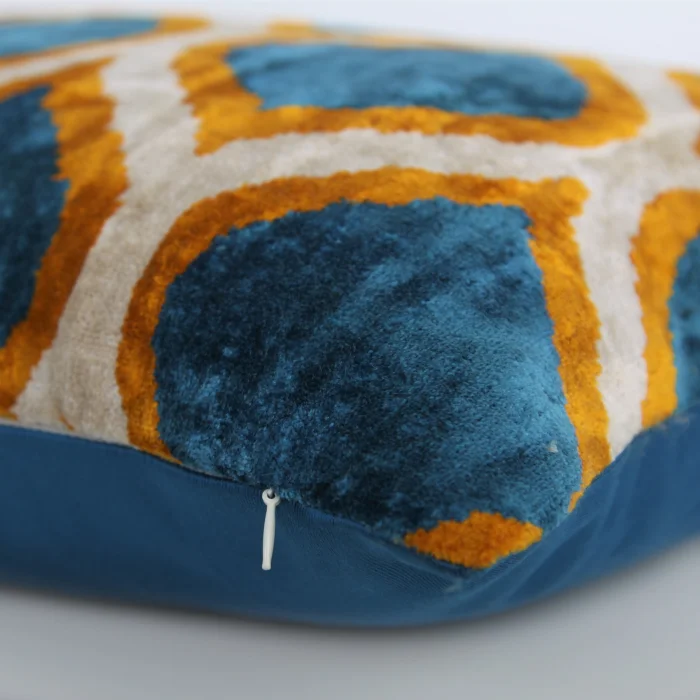 • Hand-woven silk velvet ikat pillow cover made in Istanbul.
