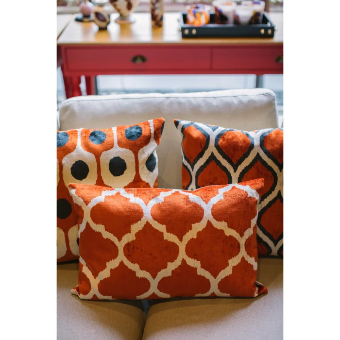 • Hand-woven silk velvet ikat pillow cover made in Istanbul.