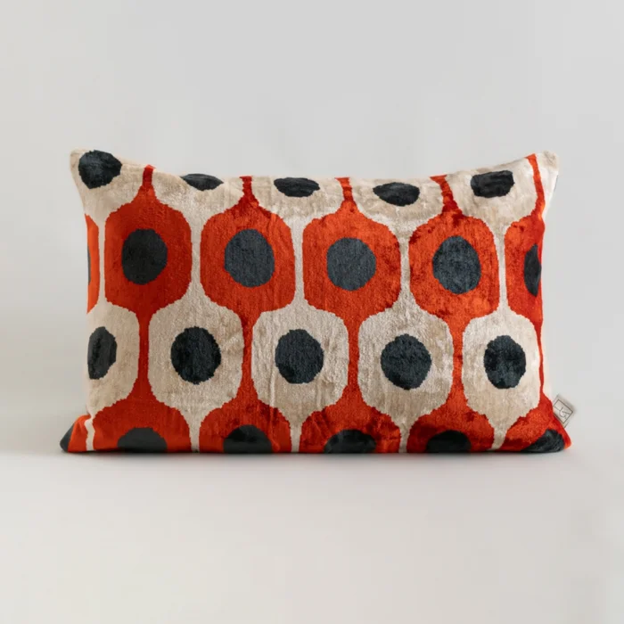• Hand-woven silk velvet ikat pillow cover made in Istanbul.
