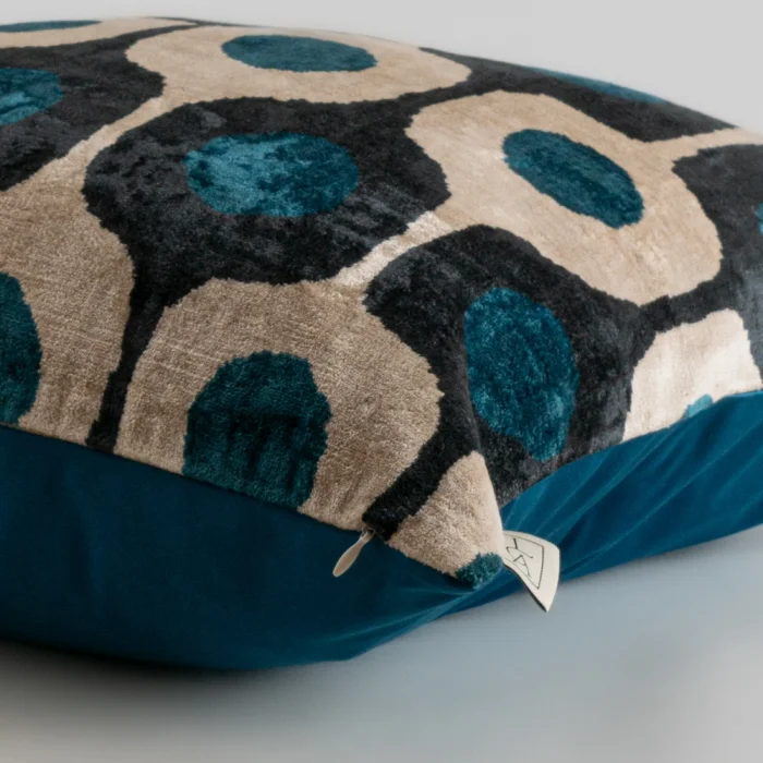 • Hand-woven silk velvet ikat pillow cover made in Istanbul.
