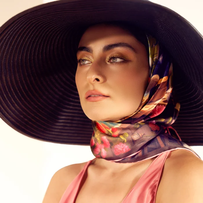 Material: 100% Twill Silk (14 mm) Edge Workmanship: Carefully hand-sewn by artisans. Pattern: Fantastic Size: 90x90 cm Usage: You can use it as a neck shawl, headscarf, hair, shoulder or beach accessory or bag ornament.