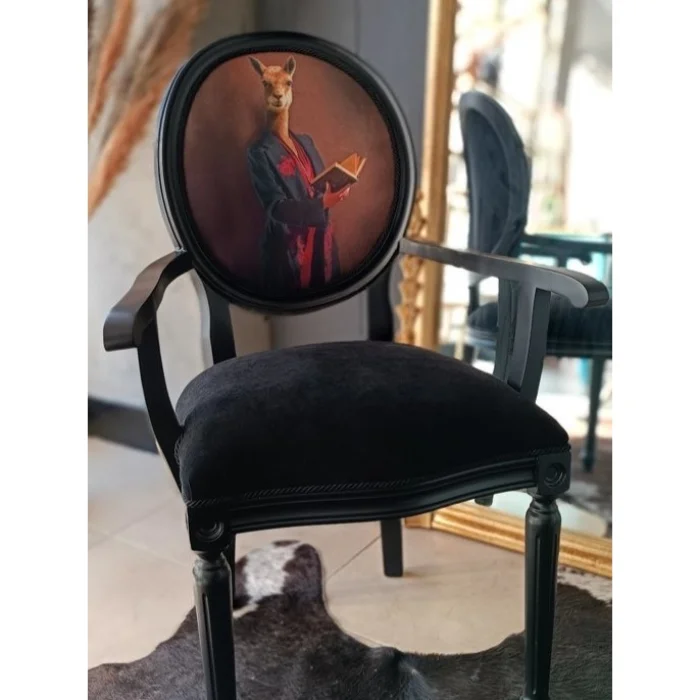 Material: Medallion Chair, fine woven velvet fabric and matte black lacquer