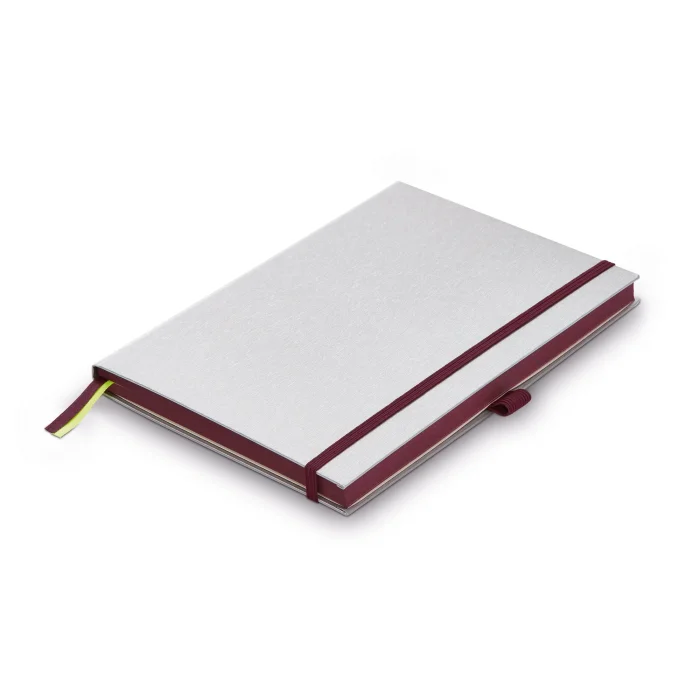 Hardcover notebook / brushed metal optic / blackpurple / A5 (145 x 210 mm) / LAMY lined notebook / 192 pages, 90 g/m2, chamois / 8 detachable pages / with pen ring for writing utensils / 2 brackets / rubberized closure / inner pocket / thread-stitched / ink-free paper / acid-free paper