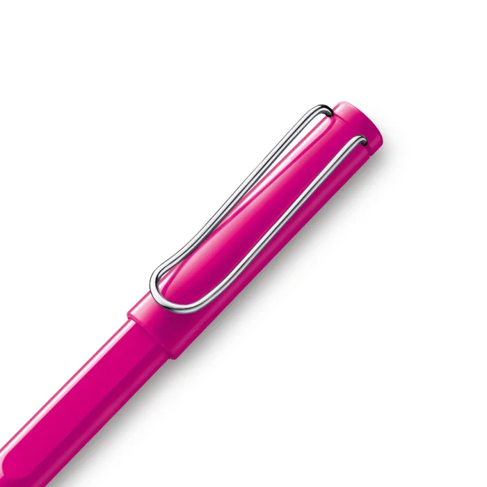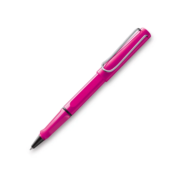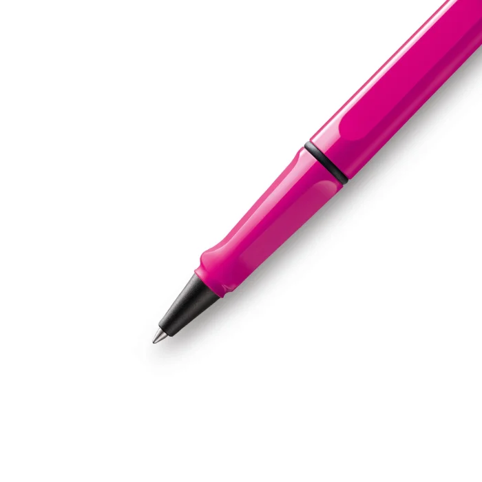 LAMY Safari series bright pink roller pen Durable plastic housing Flexible Unique Metal Clip Ergonomic Grip The LAMY M63 includes a blue reflux. Designer: Wolfgang Fabian International Design Award: IF Made in: Germany