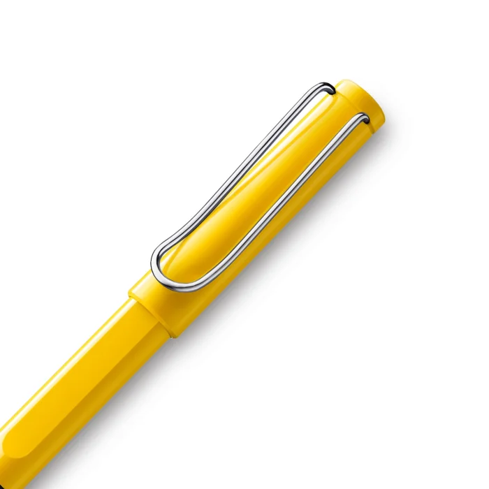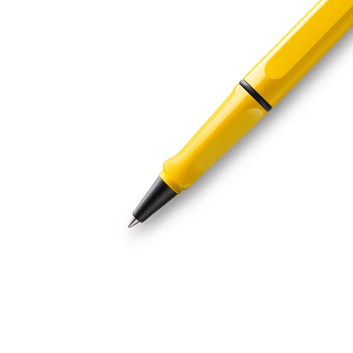 LAMY Safari series bright yellow roller pen Durable plastic housing Flexible Unique Metal Clip Ergonomic Grip The LAMY M63 includes a blue reflux. Designer: Wolfgang Fabian International Design Award: IF Made in: Germany