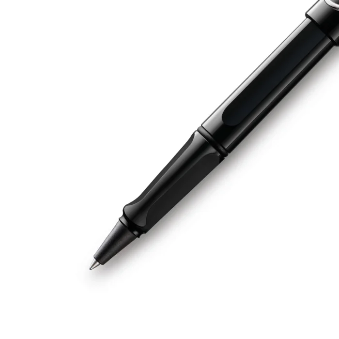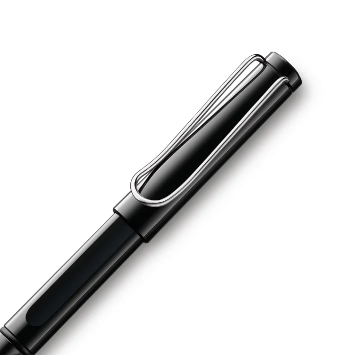 LAMY Safari series glossy black roller pen Durable plastic housing Flexible Unique Metal Clip Ergonomic Grip The LAMY M63 includes a black reflux. Designer: Wolfgang Fabian International Design Award: IF Made in: Germany