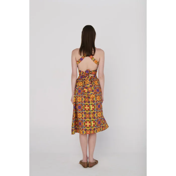 *Patterns are created from the works of Artist Defne Camcıoğlu, *100% Cotton, * The product is carefully designed with fine-textured and tough poplin fabric, considering durability and comfort, * The work, which consists of geometric patterns, is printed on poplin fabric by digital printing method, * The product is sleeveless, with midi length detail, * The product, which has a square neckline, offers a stylish look with its back décolleté. CARE RECOMMENDATIONS: * Washing can be done at 30 degrees, *Bleach cannot be used, *Do not dry in the machine. BODY MEASUREMENTS S: HEIGHT: 101 cm WAIST: 62 cm M: HEIGHT: 103 cm WAIST: 66 cm