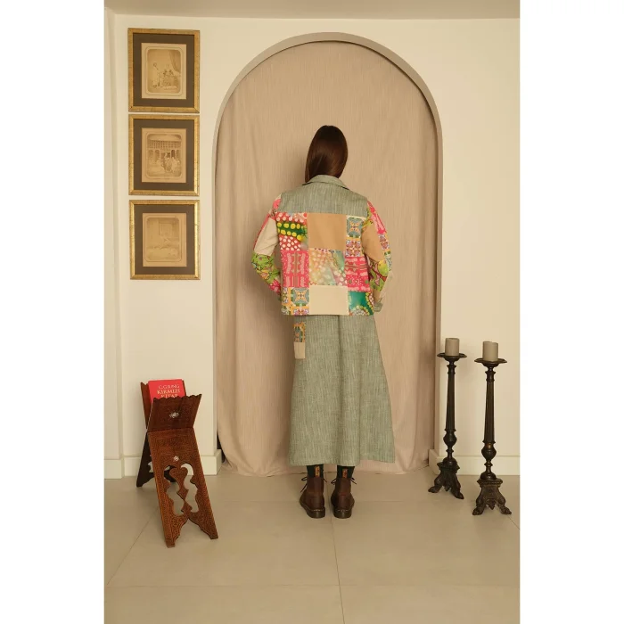 *Patterns are created from the works of Artist Defne Camcıoğlu, * Viscose blended, lined, *The product is made of draped and soft-textured viscose blended fabric, * The jacket with shirt collar and button details offers a stylish look with patch combinations. CARE RECOMMENDATIONS: Washing can be done at 30 degrees, Bleach cannot be used, Do not dry in the machine. BODY MEASUREMENTS S: BUST:54 HEIGHT: 54 M: BUST:56 HEIGHT: 54