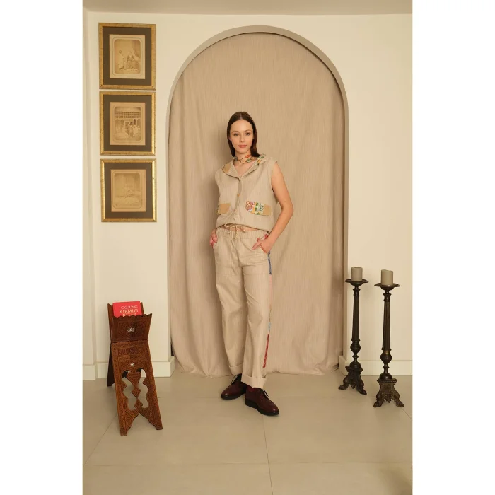 *Patterns are created from the works of Artist Defne Camcıoğlu. * Viscose blended, *The product is made of flowing and soft-textured viscose blended fabric. * The product, which has a hood collar and lace detail on the front, offers a stylish look with its patch combinations. CARE RECOMMENDATIONS: Washing can be done at 30 degrees, Bleach cannot be used, Do not dry in the machine. BODY MEASUREMENTS