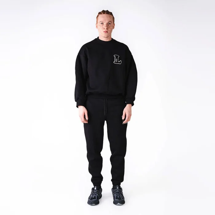 This black tracksuit is the epitome of refined streetwear minimalism. Consisting of a comfortable crewneck sweatshirt and matching jogger pants, the set features a bold, embroidered "L" logo that adds a touch of character to its monochromatic design. Main Fabric: 80% COTTON 20% POLYESTER Machine Wash 30 °C Do not dry in a dryer. Wash by turning upside down. Wash with similar colors.