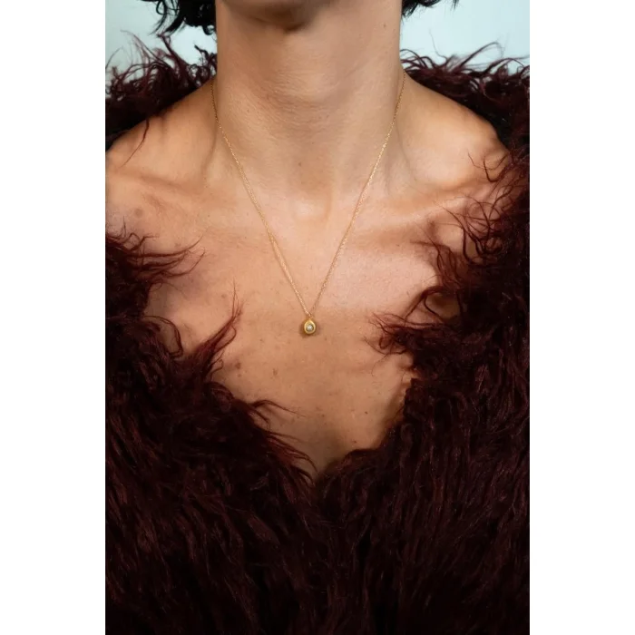 Aura Minimal Pearl Necklace Features; 925 Sterling Silver 22K Gold plated Natural Pearl is used. Color: Matte Gold Pendant Length: 50cm