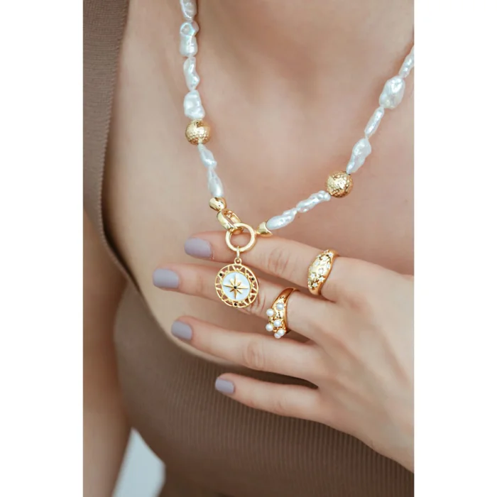Polestar Medallion with White Enamel Detail& Asymmetrical Natural Pearl.