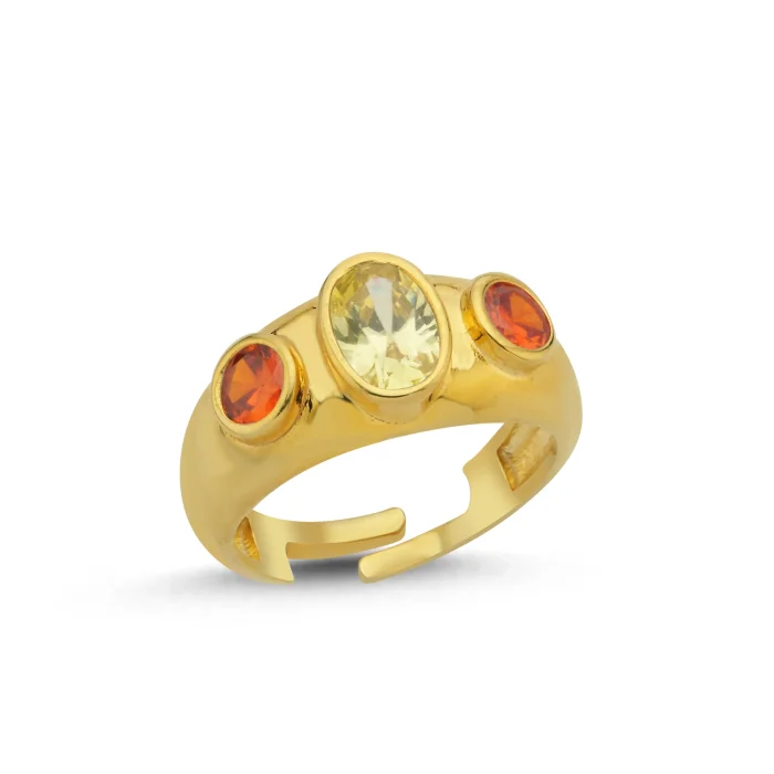 Rosie Colored Stone Ring Features: 925 Sterling Silver 22K Gold Plated Stone Colors: Blue, White, Pink, Yellow Orange, Yellow Green, Lilac Pink The ring size is adjustable. Ring Gram: 3,80gr