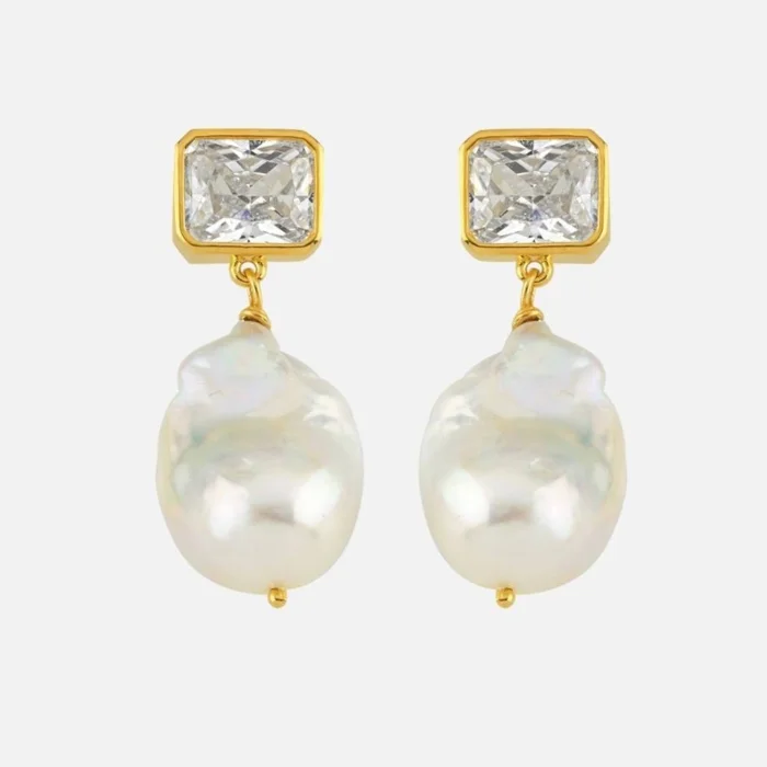 Product: White Crystal Stone Baroque Pearl Dangle Earring