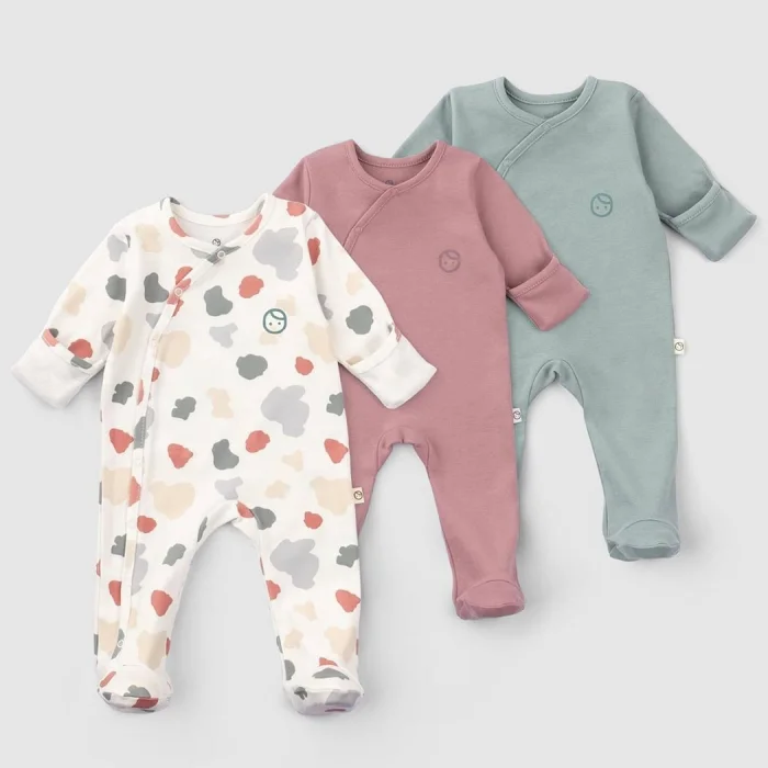 Product: 3-pack Organic Cotton Baby Sleepsuit Set With Built-in Mittens & Footies - Animal Print