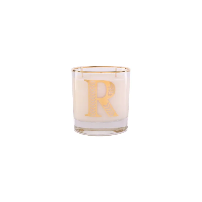 Monogram Candle Letter R - Royal Rose We designed this Monogram Candle with the best quality soy and essential oils and in 3 different scents that will stimulate your senses, and poured it into glass cups with your initials embroidered with gold gilding using traditional methods. Meet the White Royal Rose that will stimulate your senses. Top notes of lemon, nutmeg, blackcurrant and rhubarb. Middle notes of lychee, rose, cashmere and incense. The base notes are cedarwood, amber, vanilla and musk. Accessories used next to the product for photo and video shooting are not included in the price. Differences between the lighting and the screens of the devices may cause the colors to be displayed differently than they are.