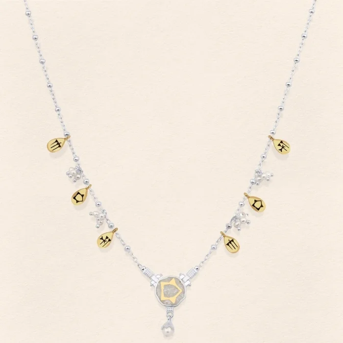 925K Gümüş, 22K Altın Kaplama, Beyaz İnci Mozaik, Beyaz İnci El Yapımı Kolye