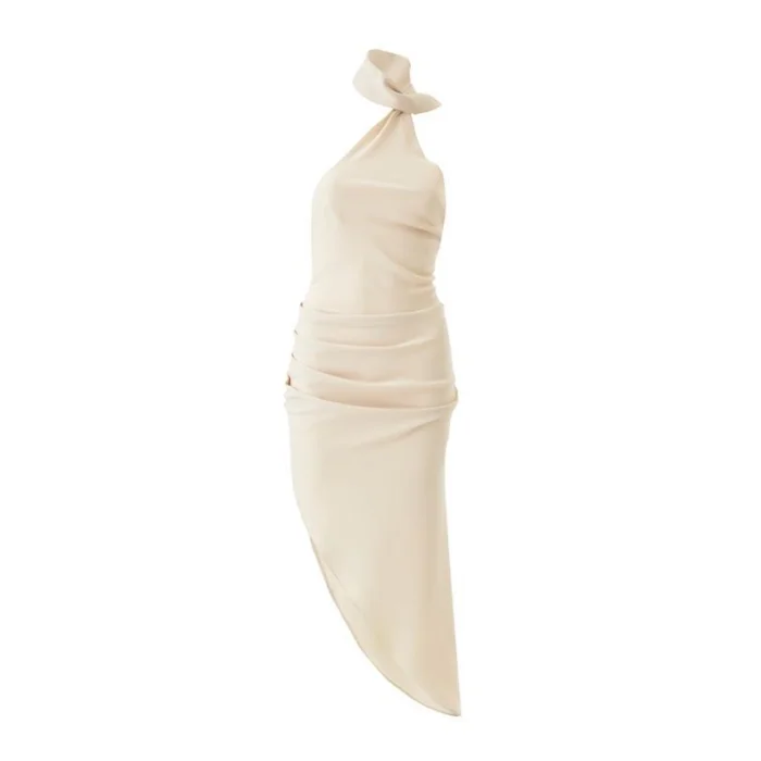 Beige nobility, complete with a long belt tied at the neck. The model in the image wears a size 36* Model Size Information Bust: 86-90cm Waist: 63-67cm Hips: 93-97cm