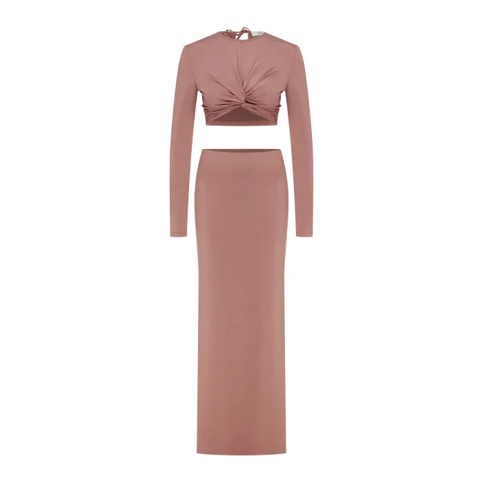 Bronze long skirt-top set.