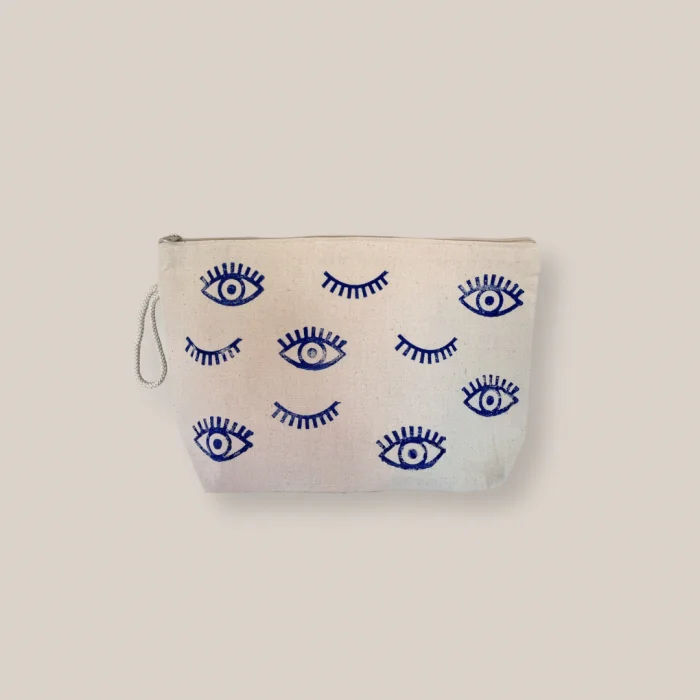 It is used in our clutch bag model made of soft canvas fabric from the Aegean with wood printing technique.