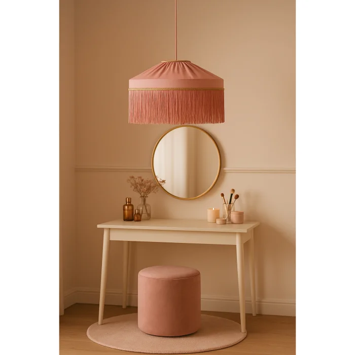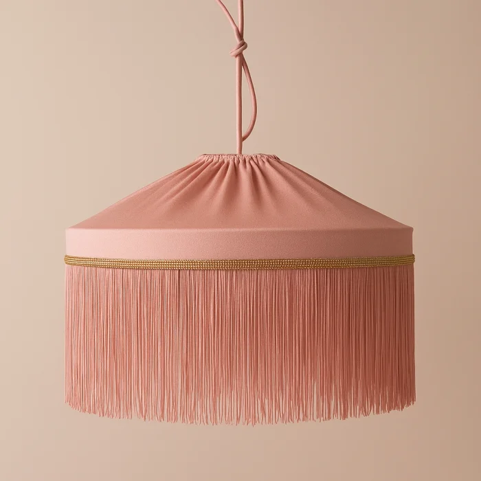 It creates a romantic ambiance with its soft coral tones and elegant tassels.